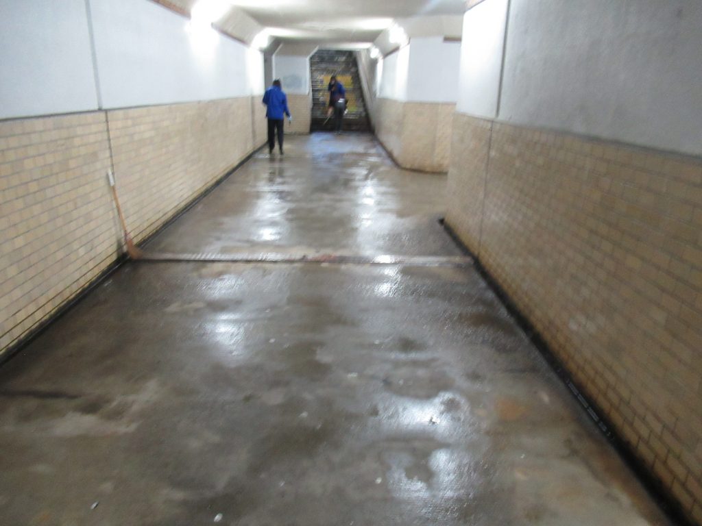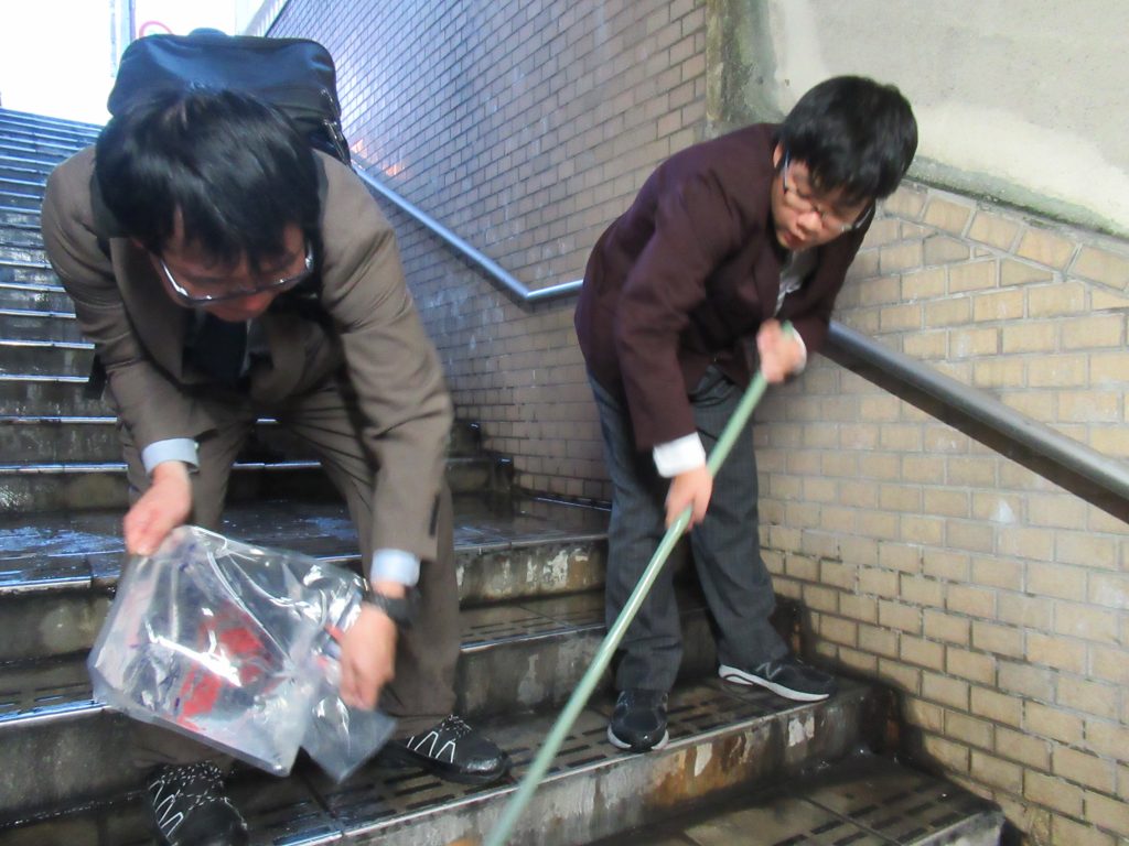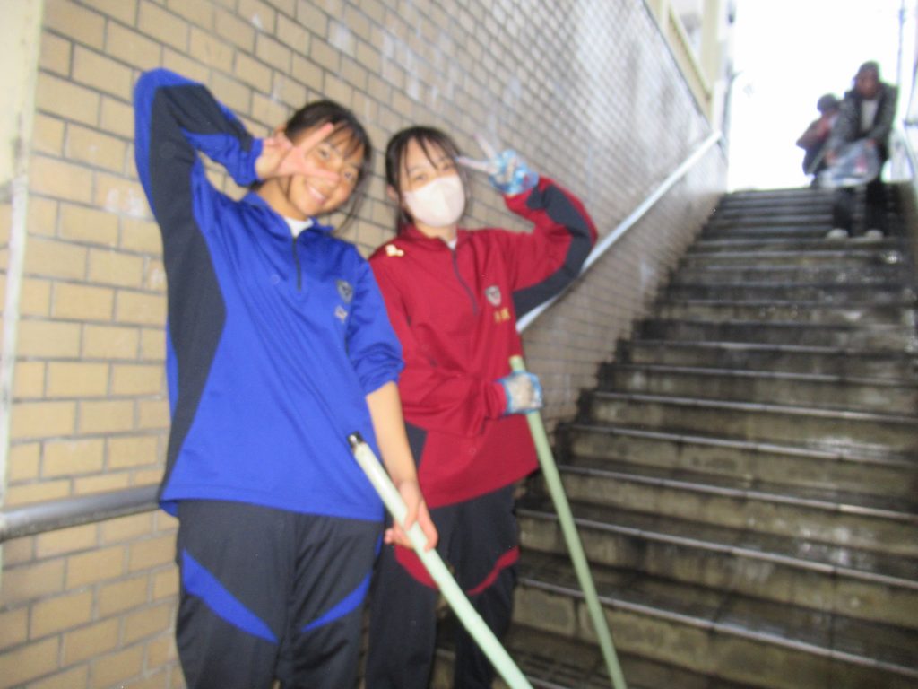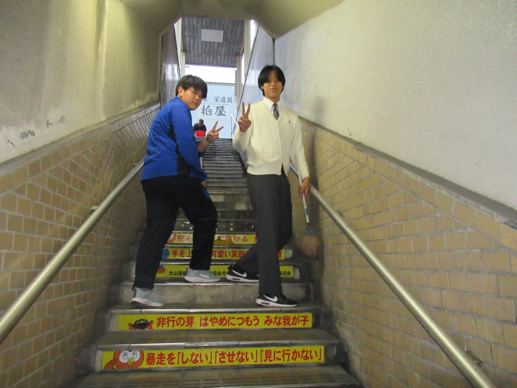 お知らせ/学校生活/山高ギャラリー 【山高ギャラリー】地下道清掃ボランティアを実施 2025年11月13日 11月12日(水)、11月15日に開催予定の「地下道のメロディー」に向けて、清掃ボランティア活動を行いました。参加者は、生徒会、社会貢献活動部、出演者の皆さんなど、約20名にのぼりました。 活動は、掃き掃除・ごみ拾い・ガムの除去から始まり、その後、市役所水道課より提供いただいた水を使って、ブラシで地下道を丁寧に磨きました。 市長さんも清掃にご参加いただくなど、皆で力を合わせてキレイな空間づくりに取り組むことができました。