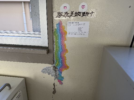 お知らせ/学校生活/山高ギャラリー 【山高ギャラリー】3年「教養美術」校内アートプロジェクト! 2025年12月18日 生徒たちが、普段過ごしている中で感じる課題をアートで何とかしようと取り組みました。校内のあちらこちらに展示され、アートでいっぱいになりました。