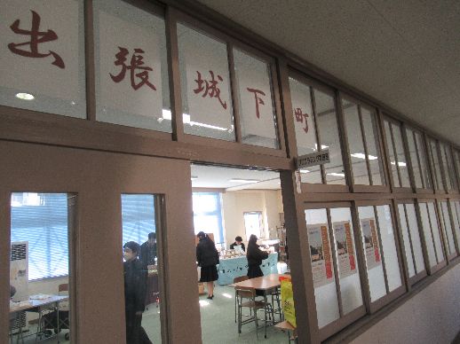 12月17日(水)~19日(金)および22日(月)の午後、保護者会期間中に、本校総合ビジネス科3年生が地域連携として「出張城下町」を開催しました。