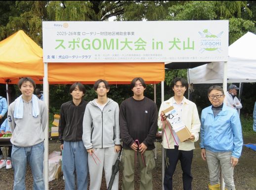 お知らせ/学校生活/山高ギャラリー 【山高ギャラリー】「スポGOMI大会 in 犬山」で優勝!! 2025年12月23日 10月26日日曜日、犬山市の成田山にて犬山ロータリークラブ主催の「スポGOMI大会 in 犬山」が開催されました。 「スポGOMI」とは、チームメンバーとともに制限時間内にゴミを拾い、その種類と量でポイントを競い合う、スポーツ感覚のイベントです。 市内のエリアを31チーム115人が回った結果、自主的に当大会に参加した本校生徒5人のチーム(チーム名:ONESCHOOL犬山高校)が優勝し、本日終業式でお披露目されました。