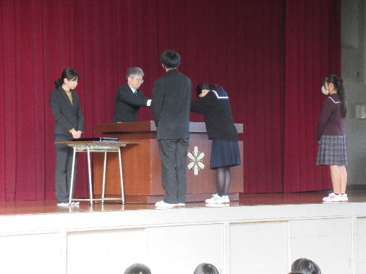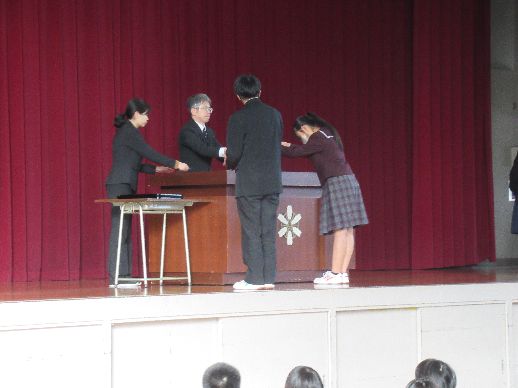 お知らせ/学校生活/山高ギャラリー 【山高ギャラリー】令和7年度 3学期始業式の風景 2026年1月7日 1月7日水曜日、3学期の始業式が行われました。生徒たちは、校長先生の講話を静かに耳を傾けて聴いていました。 講話の後には、受納式がありました。