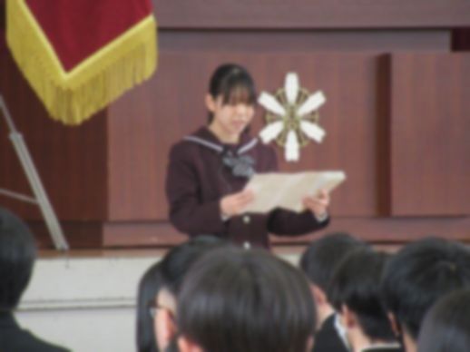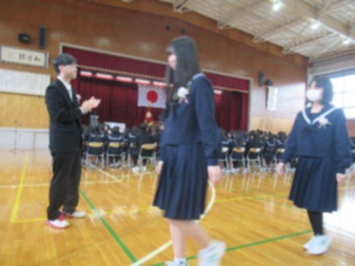 在校生代表の生徒からの送辞には1年生のとき部活でケガをしてしまったときのエピソードが入っており、卒業生たちが持つ他人への優しさを感じることが出来ました。