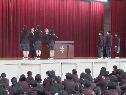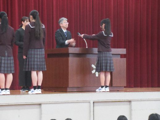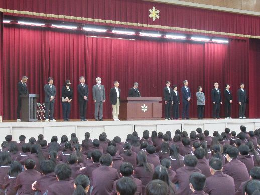 お知らせ/学校生活/山高ギャラリー 【山高ギャラリー】令和8年度 始業式および認証式・対面式の風景 2026年4月10日 4月7日火曜日、令和8年度の第1学期始業式が挙行されました。 新しい学年・新しいクラスでの学校生活が始まり、生徒たちは気持ちを新たに、気合の入った表情で始業式に臨みました。式後には、生徒会認証式・対面式ならびに諸指導が行われました。 対面式では、在校生が新たに仲間となった新入生を温かく迎え、学校全体が新年度のスタートを喜び合うひとときとなりました。 最後の諸指導は、教務部と生徒指導部よりそれぞれ行われました。